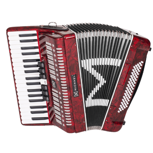 O Acordeon Michael ACM8007N Vermelho Perolado 80 Baixos é projetado para sanfoneiros dinâmicos que buscam boa definição, alta projeção e versatilidade em sertanejo, forró, baião, xaxado e música regional sulista. Ideal para sanfoneiros velozes que dominam os palcos e ocasiões musicais, oferece timbre intenso e confortável graças às palhetas de aço inoxidável, fole de linho e couro resistente, e estrutura em madeira de lei, proporcionando graves robustos, agudos intensos e tocabilidade firme em performances profissionais.