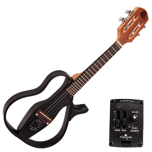 Cavaco Elétrico Ativo Vazado Preto Fosco Maciço com Tampo Cedro Inteiriço Pré UK-300T 2 Bandas Afinador Indicador Bateria e Timbre Natural Anti-Microfonia