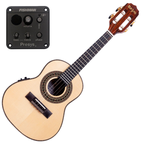 Com tampo Abeto maciço, Jacarandá maciço e Fishman Presys II, o RC06 é ideal para samba e choro. Eleve sua música com artesanato Rozini!