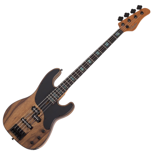 O baixo elétrico Schecter Model-T-4 Exotic NS é projetado para baixistas que buscam performance extrema com um visual exótico e premium. Ideal para rock, metal, funk e estilos progressivos, este baixo 4 cordas oferece tensão otimizada, ergonomia superior e uma paleta tonal versátil graças aos captadores EMG 35P4 (neck) e 35J (bridge), com acabamento Natural Satin que combina elegância natural com attitude feroz.
