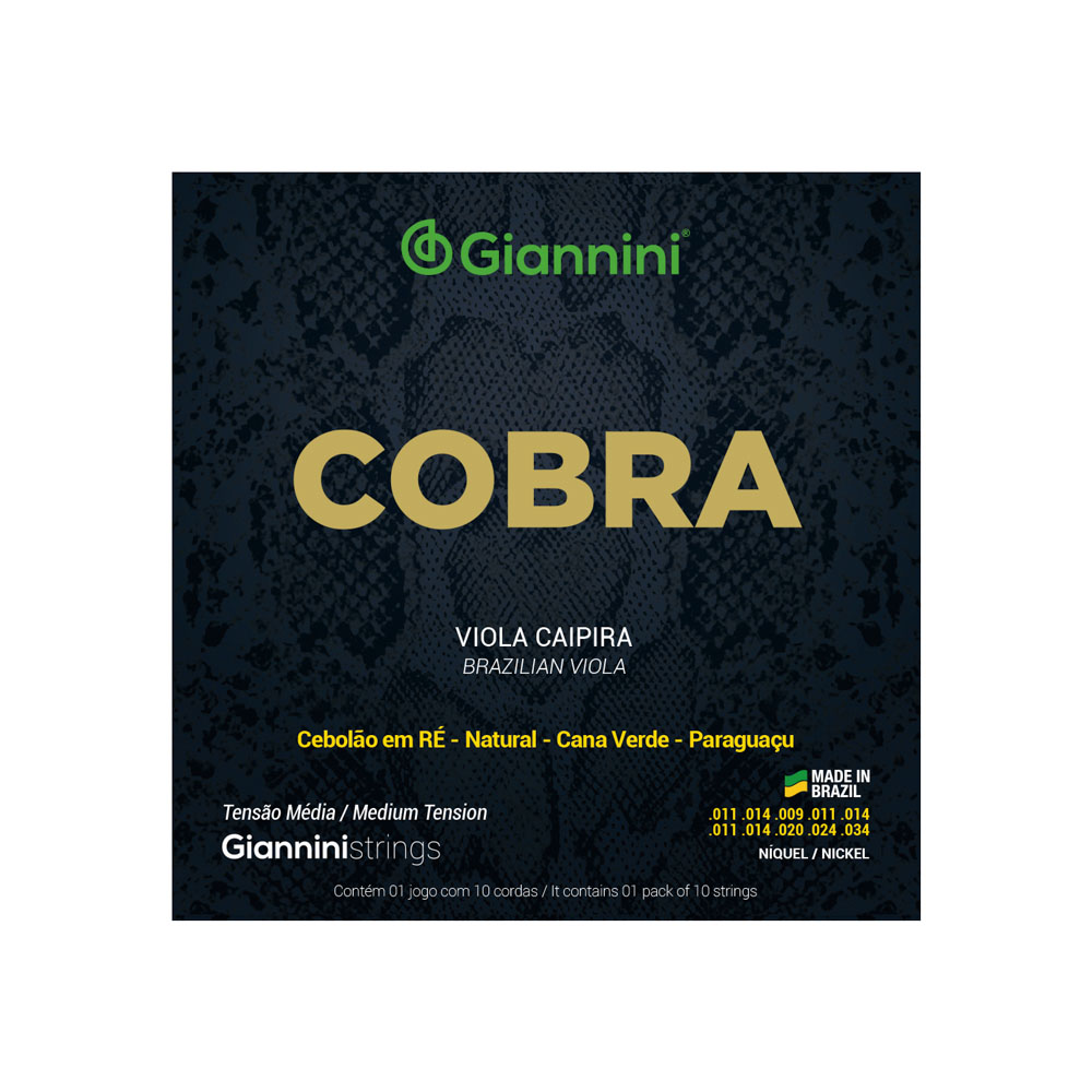 Encordoamento Viola Caipira, Giannini Cobra, Encordoamento Cebolão Ré, Encordoamento para Viola Elétrica, Cordas de Viola Caipira, Instrumentos Musicais Brasil, Encordoamento de Níquel.