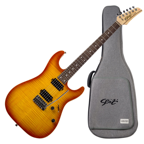 A Guitarra Seizi Katana Ozielzinho MK3 Desert Flame é uma superstrato equipada com headstock arrojado Katana, captadores em configuração HH e ponte com alavanca, perfeita para músicos que buscam performance e timbre que une o vintage ao moderno. Este produto acompanha bag Premium Seizi Armor para transporte seguro e prático. Ideal para rock, blues e estilos variados, oferece ataque e definição de graves e agudos graças aos captadores Seizi Jutsu ALNICO V, com acabamento Gloss que exala sofisticação e durabilidade. Desenvolvida em parceria com o guitarrista brasileiro Ozielzinho, oferece liberdade musical sem precedentes, tocabilidade suave e precisão.