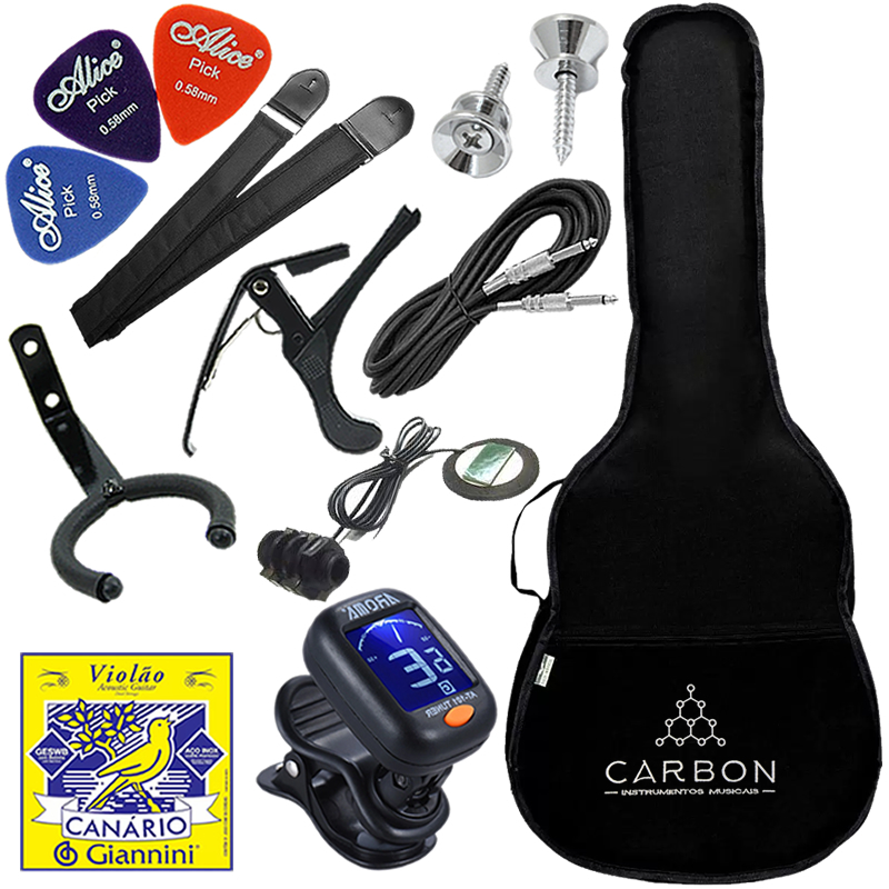 Encordoamento | Renove o som do seu violão com o encordoamento de qualidade superior, oferecendo timbre brilhante e excelente resposta ao tocar. |