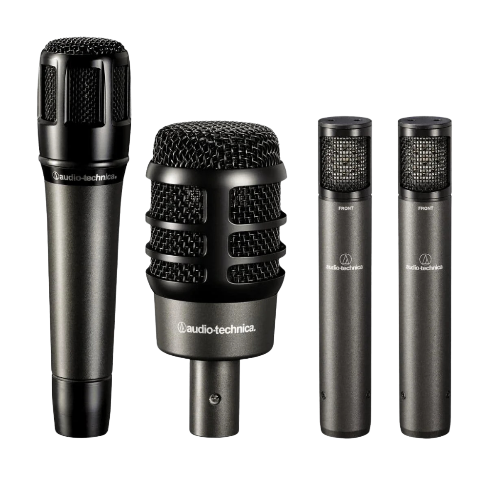 O Audio-Technica ATM-DRUM4 é um kit de microfones dinâmicos e condensadores especialmente desenvolvido para baterias, oferecendo a solução mais assertiva, prática e profissional para capturar o som completo de kits de bateria em performances ao vivo e gravações de estúdio. Este pack da série Artist inclui quatro microfones essenciais: um ATM250 hipercardioide para kick, um ATM650 hipercardioide para snare e dois ATM450 cardioides para overheads, eliminando a necessidade de compras individuais e garantindo compatibilidade perfeita para uma microfonação limpa e desobstruída.