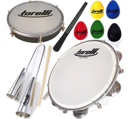Kit Samba C/ 10 Itens Pandeiro Tamborim Agogô Ganza Torelli