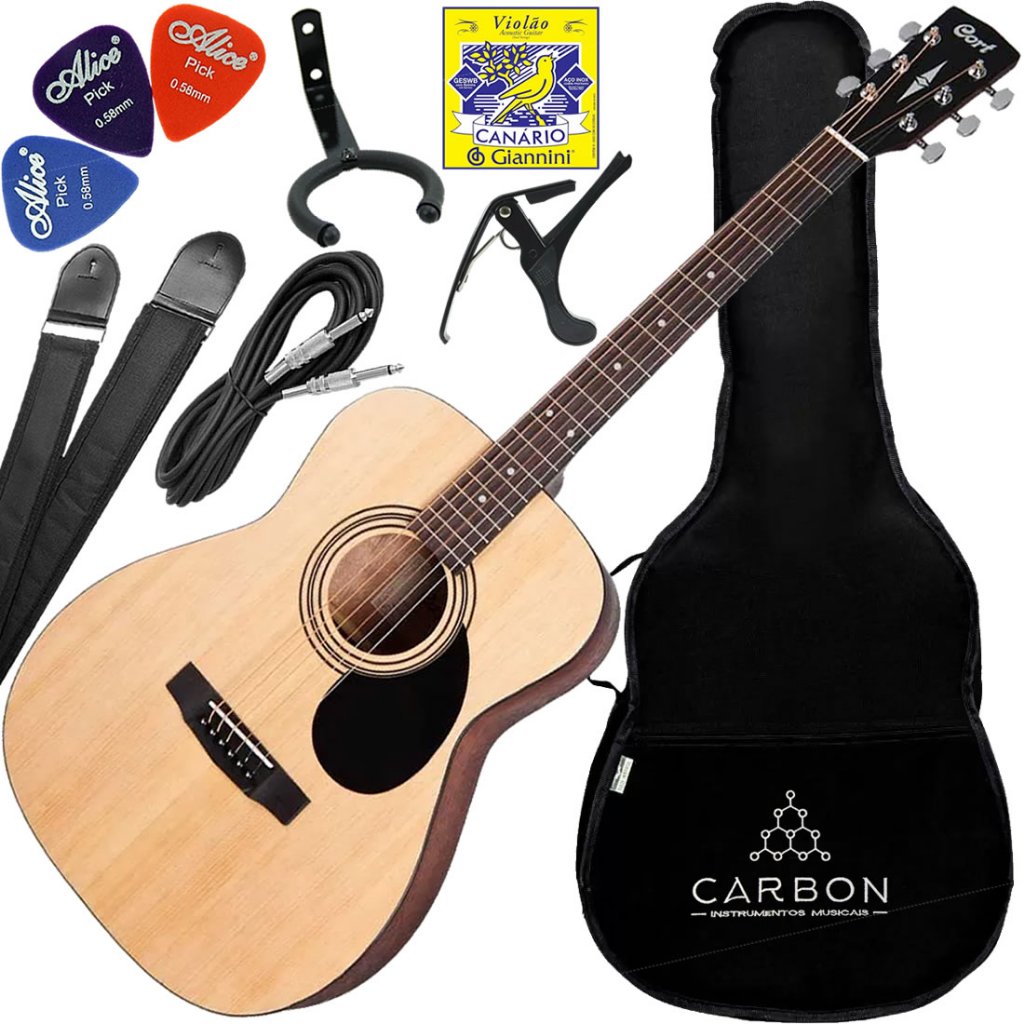 Kit Violão Cort AF510EDX OP Folk C/ Afinador Open Pore Natural Vx02