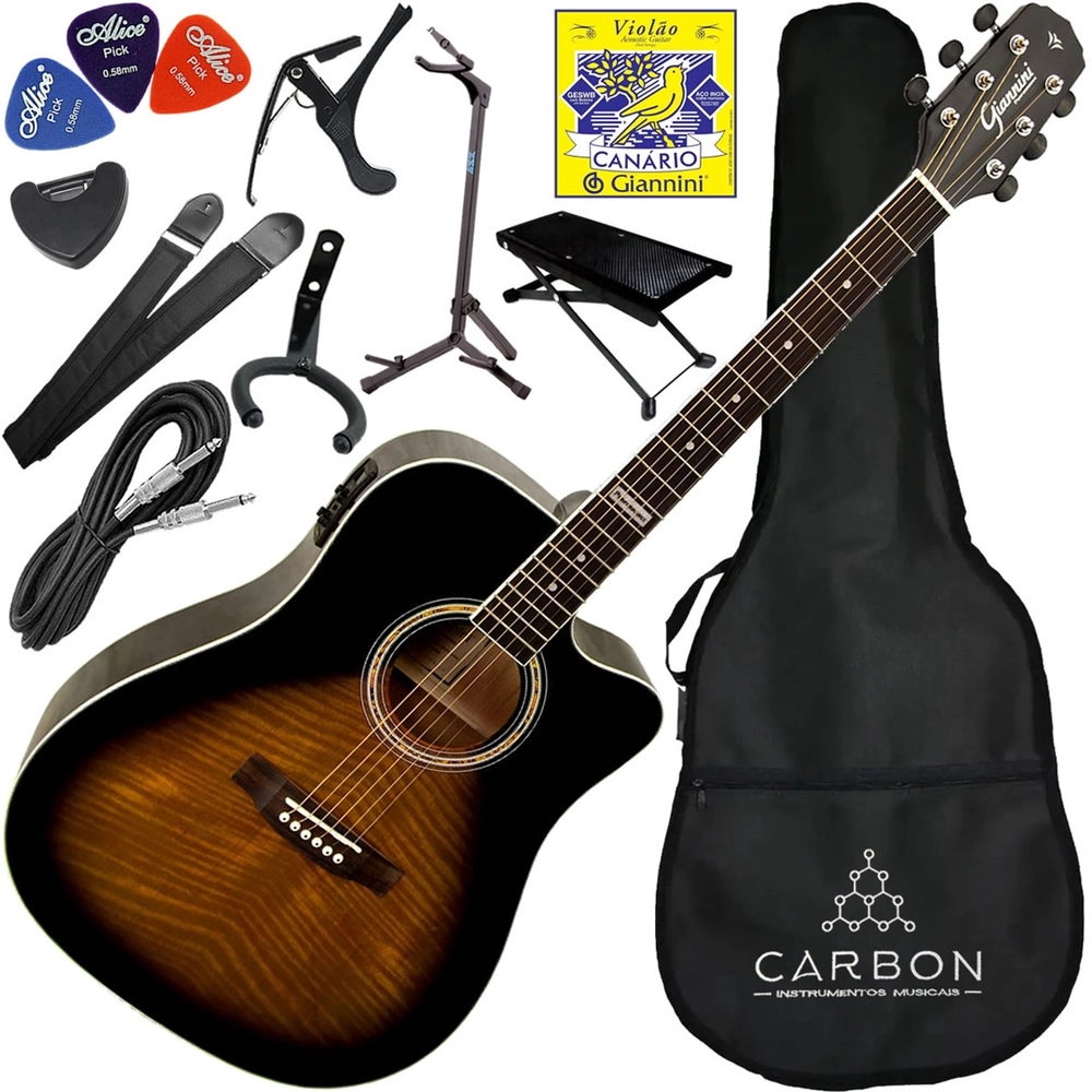 Modelo: Violão Folk Cutaway Eletroacústico Aço