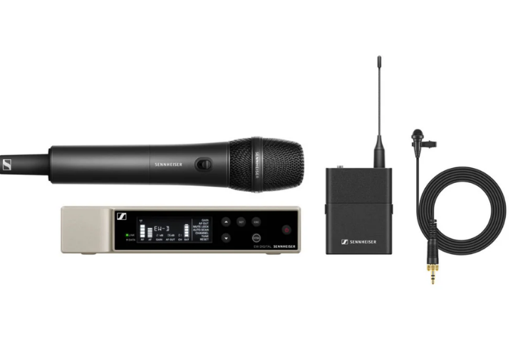 Combina a renomada tecnologia da Sennheiser com microfone lapela discreto ME2 para captação de voz excelente e microfone de mão 835-S com resposta equilibrada e rejeição de feedback. Fácil configuração para iniciantes e profissionais, com alcance de 100 metros e bateria de longa duração.