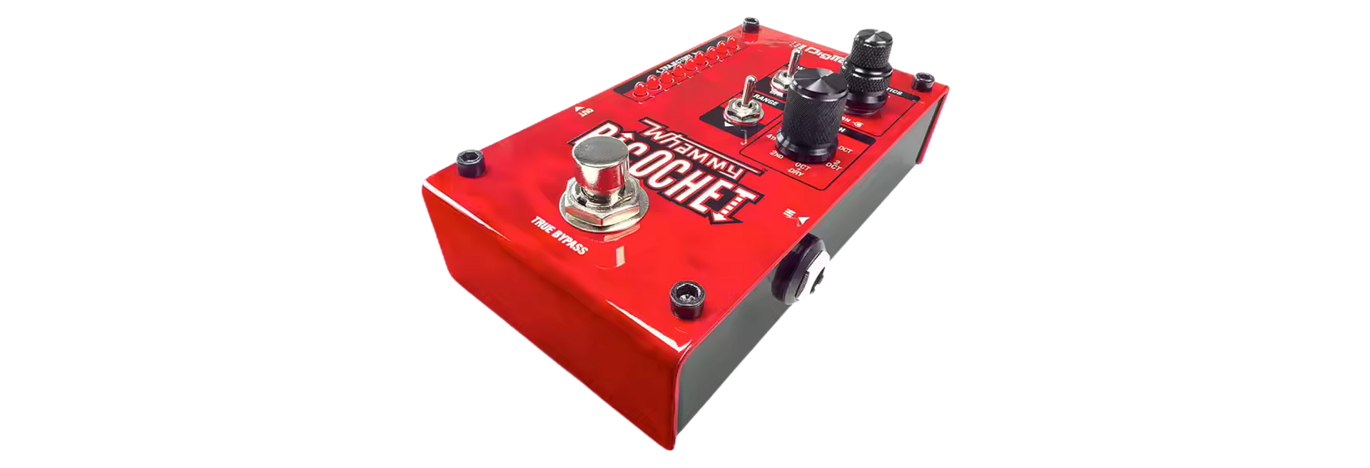 O Digitech Whammy Ricochet é o pedal de pitch shift que traz o icônico Whammy para pedalboards menores, substituindo o treadle por um momentary footswitch com ballistics personalizáveis para rises e falls controlados. Com 7 intervalos de pitch (2nd, 4th, 5th, 7th, Octave, Double Octave, Octave+Dry) e toggle up/down, ele permite dives, harmonias e drops instantâneos sem ocupar espaço extra.