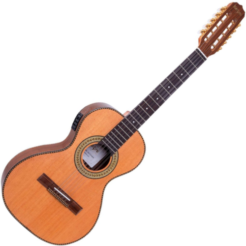 Captação Fishman Presys+: Permite amplificar o som da viola com alta fidelidade e clareza, com controles de volume, graves, médios, agudos, notch filter e afinador embutido.