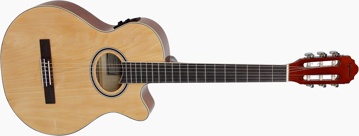 A começar por seu formato Mini Jumbo, já entra com a vantagem de um som equilibrado e tamanho diminuído, potencializado pela leve Basswood laminada de seu grandioso corpo, que integra suavemente o firme braço com tensor bi-direcional, de Okoume. Sua captação eletroacústica se dá em rastilho, e a reverberação ganha o toque especial de cordas de Nylon pesadas, de fácil afinação graças às tarraxas pino-grosso de resistente níquel!