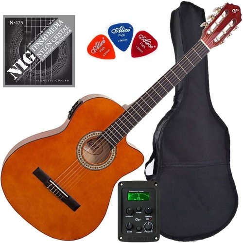 Violão GIANNINI NF-14 Flat Cutaway Eletroacústico Natural Nylon, possui Braço em Catalpa com Tensor Bi-direcional, Tampo em Linden, Escala Dark Maple e Equalização 3 bandas.