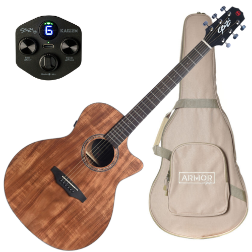 O Violão Seizi Ryu Cutaway Kaizen Koa Satin é um violão eletroacústico equipado com cutaway, captador recarregável e headstock clássico, perfeito para músicos que buscam performance e timbre que une o vintage ao moderno. Este produto acompanha bag Armor by Seizi para transporte seguro e prático. Ideal para folk, blues e estilos variados, oferece distribuição equilibrada entre graves, médios e agudos graças à madeira Koa Laminado, com acabamento Satin que exala sofisticação e durabilidade. Inspirado no modelo Ryu da linha Supreme, cujo nome significa "dragão filho" em japonês, eleva o nível de produtos acessíveis com características profissionais.